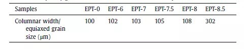 表4 非EPTed和EPTed样品中β晶粒的大小。